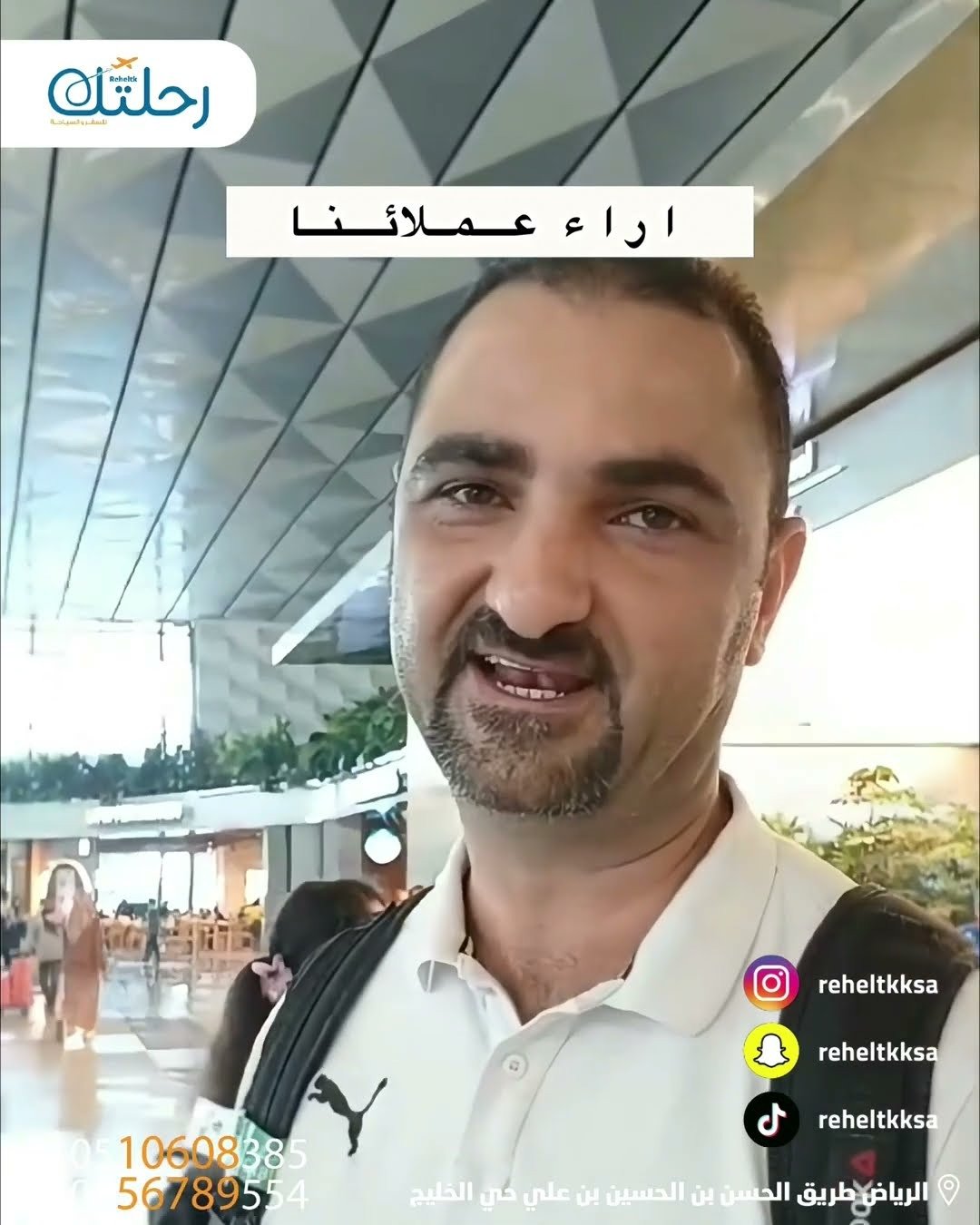 السلام عليكم ورحمة الله وبركاته الفضل لله تعالى ثم لمؤسسة رحلتك للسفروالسياحة تم شراء بكج رحله سيرلنكا وكان البرنامج ناجح جدا ومرتب والسعر مناسب جدا .. انصح وبكل امانة اختيارهم من غير تردد .. وخاصه مع الاخ اسلام النسر .. هو سيجعل رحلتك جميله ومريحه بارك الله فيهم وسأعتمدهم في رحلاتي القادمه ان شاء الله